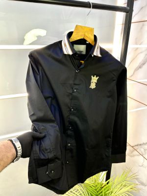 Burberr y Logo Black Premium Shirt With Brand Box Packing and Carry Bag F2690-BL