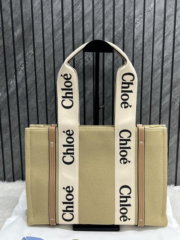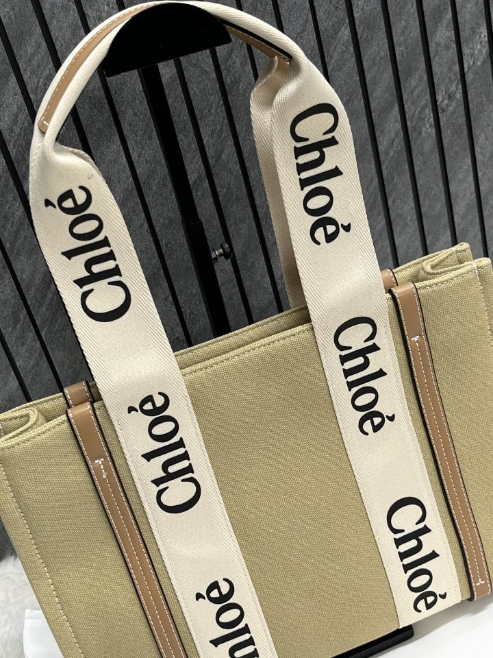 Chloe Pink Medium Canvas Woody Tote With Dust Cover