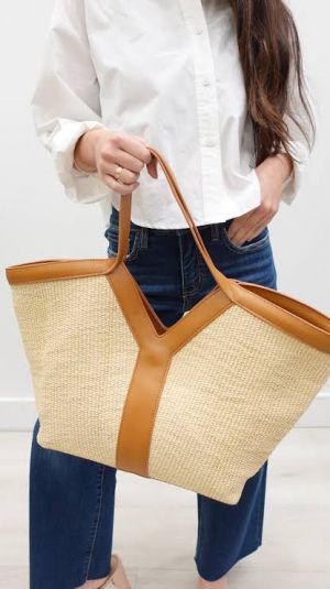 YSL SAINT LAURENT Y TOTE BAG RAFIA VEGETABLE-TANNED EITH DUST BAG